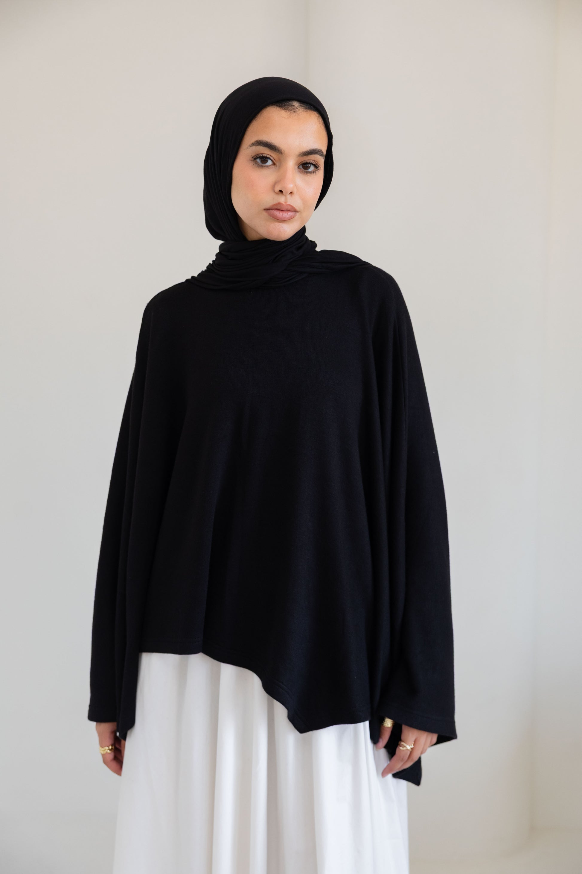 Wrap yourself in effortless warmth with our soft knitted cape. Designed with a relaxed, flowy silhouette, it drapes beautifully for easy layering on cooler days. Crafted from cozy, lightweight yarns, it adds a chic touch to any outfit—perfect for elevating both casual and elegant looks.